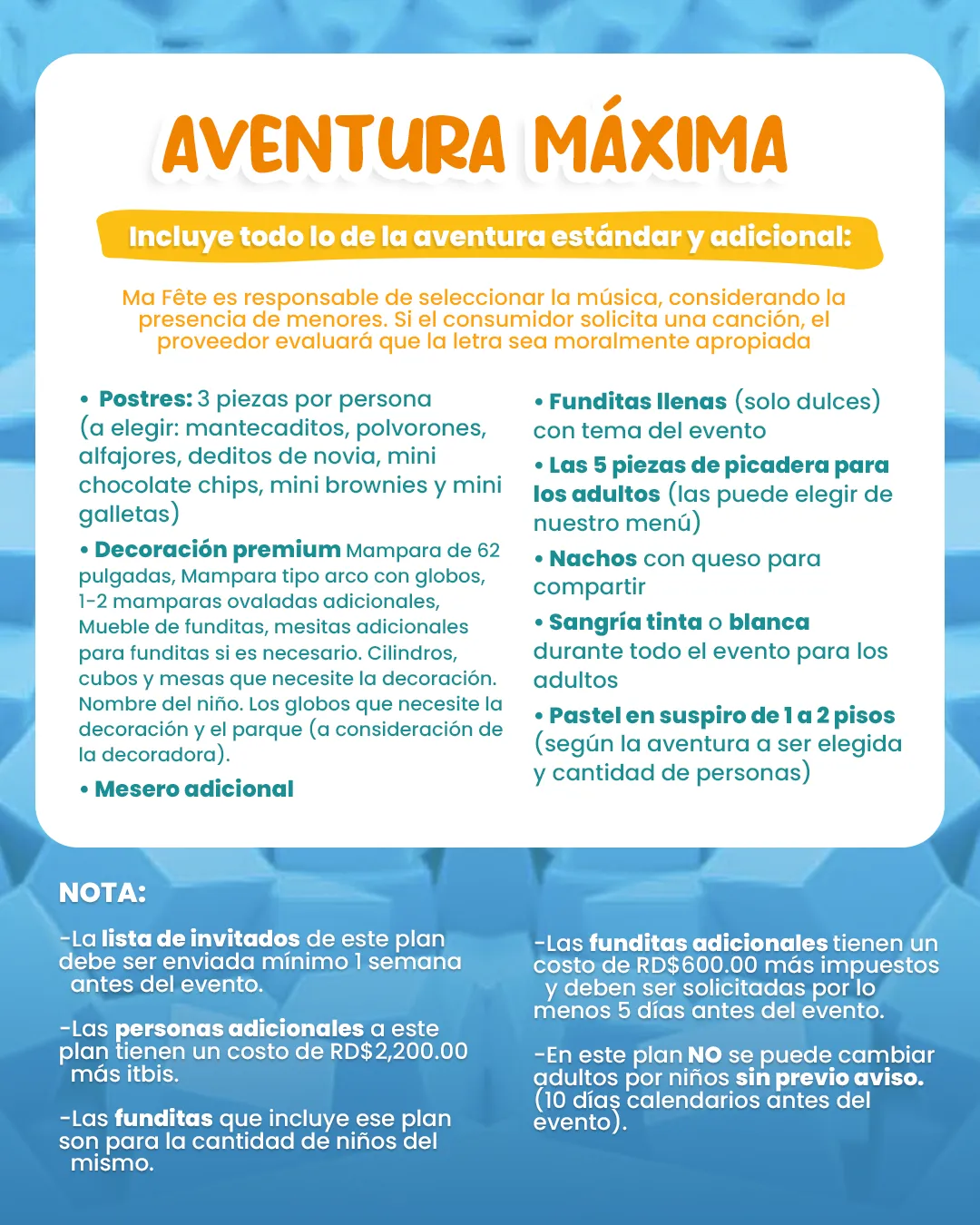 * Precios no incluyen impuestos